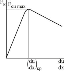 Из формулы следует, что сила Fк будет возрастать пропорционально относительной скорости перемещения микрочастиц колеса до достижения максимально возможного значения Fсц max, которое определяется коэффициентом трения покоя. По мере приближения силы к этому значению зона сцепления на опорной площадке уменьшается, зона упругого скольжения растет. Как только зона сцепления обратиться в точку, что соответствует значению происходит срыв сцепления.