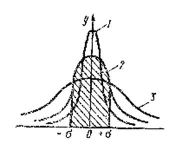 Рис.2. Характер рассеяния кривой нормального распределения: 1 -