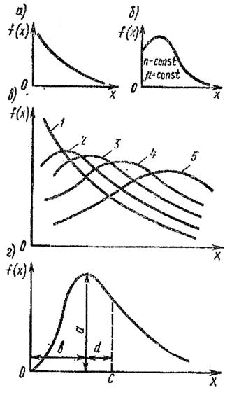 При исследований многих процессов, связанных с установлением расчетных характеристик, материалов и т.п., используют закон распределения Пирсона (рис.4, г), чаще всего представляемый в виде