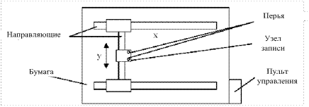 Классификация средств регистрации. По принципу взаимодействия записывающего органа и носителя графического регистрирующего устройства (ГРУ) подразделяются на двух - координатные (планшетные) и однокоординатные (барабанные). В двух - координатных записывающий орган перемещается по координатам Х и У по полю неподвижного носителя, закрепленного на планшете. В одно - координатных носитель перемещается по одной координате, записывающий орган - по другой. По способу регистрации ГРУ делят механические и немеханические. В ГРУ механического типа изображение формируется путем механического нанесения красителя на бумагу. При этом в качестве записывающего инструмента применяются перья, фломастеры. В ГРУ немеханического типа для регистрации используют электрографический, электрохимический, магнитографический, электротермический способы. ГРУ характеризуются следующими параметрами: - точностью, которая определяется отклонением координат графика от их расчетных значений; зависит от минимального шага перемещения регистрирующего органа; - быстродействием, определяемым скоростью вычерчивания линии; - размерами рабочего поля носителя; - количество применяемых пишущих инструментов, обеспечивающих различные цвета линий и их толщину; - количеством интерфейсов, с которыми может работать ГРУ.