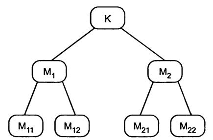 Рис. 5.2. Пример структуры комплекса программ Интеграционное тестирование применяется на этапе сборки модульно оттестированных модулей в единый комплекс. Известны два метода сборки модулей: • монолитный, характеризующийся одновременным объединением всех модулей в тестируемый комплекс; • инкрементальный, характеризующийся пошаговым (помодульным) наращиванием комплекса программ с пошаговым тестированием собираемого комплекса. В инкрементальном методе выделяют две стратегии добавления модулей: — «сверху вниз» и соответствующее ему восходящее тестирование; — «снизу вверх» и соответственно нисходящее тестирование. Особенности монолитного тестирования заключаются в следующем: для замены не разработанных к моменту тестирования модулей, кроме самого верхнего (К на рис. 5.2), необходимо дополнительно разрабатывать драйверы (test driver) и/или заглушки (stub) [9], замещающие отсутствующие на момент сеанса тестирования модули нижних уровней. Сравнение монолитного и интегрального подходов дает следующие результаты. Монолитное тестирование требует больших трудозатрат, связанных с дополнительной разработкой драйверов и заглушек и со сложностью идентификации ошибок, проявляющихся в пространстве собранного кода. Пошаговое тестирование связано с меньшей трудоемкостью идентификации ошибок за счет постепенного наращивания объема тестируемого кода и соответственно локализации добавленной области тестируемого кода. Монолитное тестирование предоставляет большие возможности распараллеливания работ, особенно на начальной фазе тестирования. Особенности нисходящего тестирования заключаются в следующем: организация среды для исполняемой очередности вызовов оттестированными модулями тестируемых модулей, постоянная разработка и использование заглушек, организация приоритетного тестирования модулей, содержащих операции обмена с окружением, или модулей, критичных для тестируемого алгоритма. Например, порядок тестирования комплекса К (см. рис. 5.2) при нисходящем тестировании может быть таким, как показано в примере 5.3, где тестовый набор, разработанный для модуля Mi, обозначен как XYi = (X, Y)i. 1) К -> XYK 2) М1 -> XY1 3)MM->XYM 4) М2 -> XY2 5) М22 -> XY22 6) M21 -> XY21 7) M12 -> XY12 Пример 5.1. Возможный порядок тестов при нисходящем тестировании (html, txt). Недостатки нисходящего тестирования: • проблема разработки достаточно «интеллектуальных» заглушек, т. е. заглушек, способных к использованию при моделировании различных режимов работы комплекса, необходимых для тестирования; • сложность организации и разработки среды для реализации исполнения модулей в нужной последовательности; • параллельная разработка модулей верхних и нижних уровней приводит к не всегда эффективной реализации модулей из-за подстройки (специализации) еще не тестированных модулей нижних уровней к уже оттестированным модулям верхних уровней. Особенности восходящего тестирования в организации порядка сборки и перехода к тестированию модулей, соответствующему порядку их реализации. Например, порядок тестирования комплекса К (см. рис. 5.2) при восходящем тестировании может быть следующим (см. пример 5.4). 1)М11->ХУ11 2) M12 -> XY12 3) М1 -> XY1 4) М21 -> XY21 5) M2(M21, Stub(M22)) -> XY2 6) К(М1, M2(M2I, Stub(M22)) -> XYK 7) М22 -> XY22 8) М2 -> XY2 9) К -> XYK Пример 5.2. Возможный порядок тестов при восходящем тестировании. Недостатки восходящего тестирования